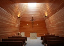 Carley dedicated the new edifice May 1, the feast day of St. Joseph the Worker, whom Catholics revere as the foster father of Jesus Christ. The church is full of symbolism for its patron saint from blocked-concrete walls to unfinished cedar benches and doors, which should grow more beautiful with age. The rough-hewn beauty celebrates the dignity of work.