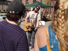 As urban block parties go, it had all the accessories. Bands jammed, kids played, neighbors mingled and a healthy number of tattooed hipsters parked their fixed-gear bikes long enough Saturday to munch on sushi and plates from Frida Bistro.