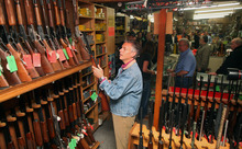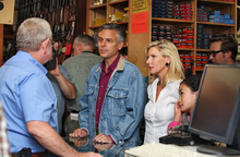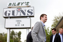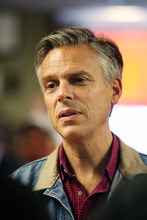 Hooksett, N.H. • On the door of Riley's Gun Shop, where former Utah Gov. Jon Huntsman Jr. visited Saturday, there is a sticker that reads: "Don't blame me. I voted for John McCain."