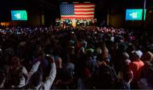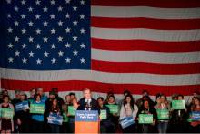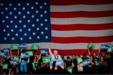 Hours before the event, as temperatures hovered in the 30s and 40s, a line to get inside stretched blocks around the building. Chrissi Ashton, 51, got in place at 6 a.m. She was later joined by her 72-year-old mother, Penny Breiman, and 18-year-old son, Spencer, boasting "three generations of Bernie supporters."