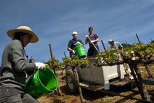 And they do. Under the bright California sun, they shovel the compost into large green buckets, pour it into freshly dug holes at the base of each vine and then cover it with dirt to ensure that the nitrogen reaches the roots. Carrillo supervises the group, showing them how to work more efficiently and pointing out when a hole is left empty or needs additional compost.