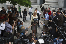Elizabeth Smart speaks to the media after Brian David Mitchell received a life sentence Wednesday, May 25, 2011.