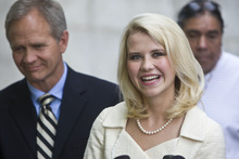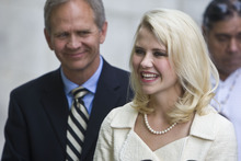 Elizabeth Smart and Ed Smart speak to the media after Brian David Mitchell received a life sentence Wednesday, May 25, 2011.