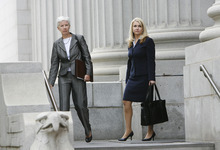 Carlie Christensen, U.S. attorney for Utah, and prosecutor Diana Hagen leave court after Brian David Mitchell received a life sentence Wednesday, May 25, 2011.