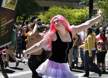 A few blocks away, Salt Lake City resident Danny Samuelson watched the tail end of the two-hour parade as Lady Gaga's "Born This Way" blasted in the background.