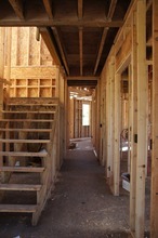 The great room, looking back toward the center of the house and the second floor. The room behind the entry could be a kitchen, though little plumbing is done yet if it is.