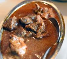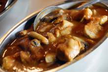 A curry entrée spiced medium-hot was studded with chunks of lamb ($9.95) and came in a sharable portion, as did the mildly spiced chicken mushroom ($8.50), which swam in tomato-based sauce tinged with garlic and ginger.