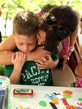Jackson Toliver, 6, of Ogden gets a hug from his mother Sara Toliver while making a treasure box at the eighth annual Ogden Arts Festival at Ogden's Historic Union Station on Saturday in Ogden. The free event featured works of more than 60 local and regional artists, live music, exhibits and art activities for kids.