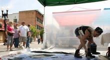 Artist Nora Choquette of Ogden splashes paint on her intuitive painting at the 8th annual Ogden Arts Festival at Ogden's Historic Union Station, Saturday, June 11 2011 in Ogden . The free event featured works of more than 60 local and regional artists, live music, exhibits and art activities for kids.