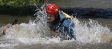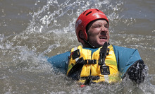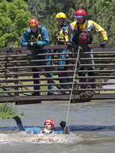 Firefighters from around the valley donned helmets and life-jackets and jumped into the frigid, swift waters of Little Cottonwood Creek on Tuesday to practice rescuing each other for what could be a busy summer rescue season.