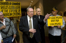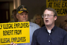 What he's trying to do is have ballot measures pass that would result in business-license revocations after an employer's second offense in hiring an undocumented worker. The first offense would result in a business having to file quarterly paperwork with the local District Attorney's Office to verify it hasn't hired undocumented workers.