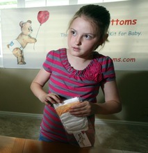 Aimee likes that assembling and marketing the diapers is something she can do with Katelynn. And Jonathan helps by placing the diapers in bags. Aimee hopes that if the business takes off, the work could provide employment for the teen.