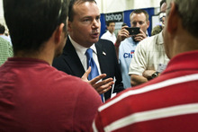 Rep. Chris Herrod, R-Provo, who had battled against HB116, grinned uncontrollably when he saw Brandon Beckham, one of the key leaders in the move to repeal the guest-worker bill. They hugged and slapped each other on the back. Arturo Morales-LLan, who gave an impassioned speech on the resolution at the Utah County Republican Convention, stood nearby and pumped his fist in the air.