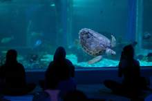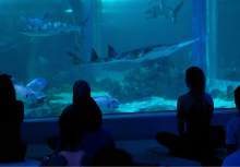 While the Living Planet Aquarium may be bustling during the day, it's peaceful after hours, making it a perfect place for yoga meditation, says Amanda Jones, owner of Yoga Experiences. She teaches the classes next to the large shark tank in one of the aquarium's banquet rooms as well as in the second-floor rainforest room with exotic birds of South America.