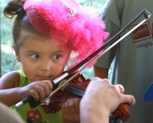 The scene at Summerhays Music Center's "Instrument Petting Zoo" inside the Art Yard was repeated from noon to 9 p.m. Friday, the second day of the Utah Arts Festival. Children such as Halle and her 5-year-old brother, Carter, proved that music could be found all around the festival, not just on the six stages positioned around Library Square and the City Hall.