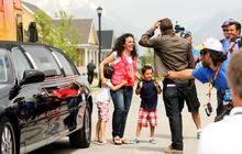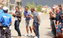 A few thousand friends, volunteers and complete strangers gathered at the Daybreak development on Wednesday for the unveiling. In accordance with the show's tradition, the family Jessica, Jonah and 5-year-old Ellie stood behind the bus while the crowd cheered, then cheered louder when the bus pulled away.