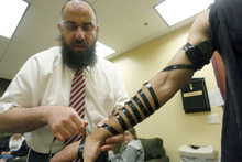 The two met to talk about the Torah, wrap A.J. with tefillin and discuss what was on the boy's mind. A.J. said religion "gave me something to turn to when I kind of fell down on my luck."
