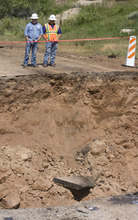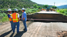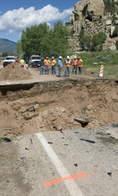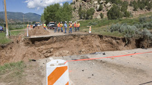 Heavy rainfall and a clogged culvert triggered the 11:30 p.m. collapse of State Road 35, several miles east of Tabiona, creating a hole in the roadway 40 feet wide and 30 to 40 feet deep, according to the Utah Highway Patrol.
