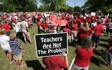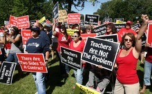 "Some of these politicians want to silence the voice of teachers. In fact, they want to silence the voice of all workers," said Greg Johnson, an executive committee member of the National Education Association who flew in from Oklahoma to speak at the rally. "If they're successful, there will be no strong voice to stand up and fight for the middle class. … And there will be no one to stand strong for the students in our classrooms."