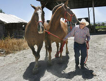 Several years ago, McKee went to Indiana to buy Tom and Jasper from Amish farmers who breed Belgian draft horses for heavy farm work. The horses get a workout six days a week at McKee's South Jordan farm. And they are pure muscle.