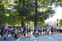 But it was apparent that even a mechanical monkey clanging the cymbals would have drawn a crowd. Most people came to people-watch, picnic or soak in the mild warmth on the perfect summer night.