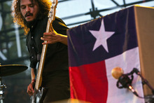 After a too-long 45-minute intermission, the Texan rock band Explosions in the Sky took the stage and were a welcome relief as their instrumental tunes weaved into one another, making their set seem like one long but compelling song. I had doubts that a band with no singing would be a captivating experience, but the band converted disbelievers, although the four didn't show much stage presence. The trouble with these shows, though, is that the size of the crowd and the crowd noise makes it difficult to enjoy the music from a decent vantage point.