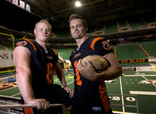 Aaron will go down as perhaps the best player in franchise history, piling up 5,202 receiving yards and 122 touchdown catches during his arena football career. Jason has settled into a less visible, but important role: a stalwart on the offensive line who occasionally gets open for a touchdown pass.