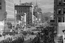 The Days of '47 Parade makes its way down Main Street on July 24, 1947.