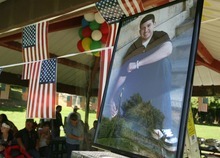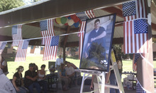 "We are here to be happy, to commemorate life, his joy for life. We are here to love each other," Arruda told those who came to pay their respects. "Freedom is not free. It is generally paid for with blood and generally young blood. My son did what he believed and I am comforted by small acts of kindness from our community, this country, our family."