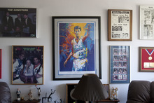 The TV room, featuring his and hers recliners, is filled with enough memorabilia from Layden's career to make a collector drool.