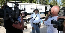 An exhausted Aaron Schellenberg talks with the media outside the Summit County Sheriff's mobile command center after hiking down the Crystal Lake trail after Summit County search and rescue members found his son, Joseph, who went missing from their camp site on Long Lake two miles above the Crystal Lake trail head in the Unita Mountains above Kamas, Utah Tuesday, August 2, 2011. The Schellenberg family searched all day for their son and were notified by radio that the boy was found  several miles away from his camp.