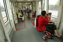 The Coons were among thousands of families taking advantage of the "food for fare" offer to benefit the Utah Food Bank on Wednesday and who are looking forward to the permanent opening Sunday of the new Mid-Jordan and West Valley City extensions that will nearly double the TRAX system.