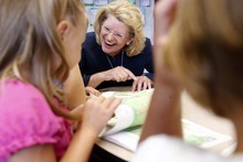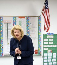 At Rose Creek, Johnson engages with the students, asking them about the day's lesson, but she also quietly thanks each teacher for the work they do. In many classes, she asks the students to tell her what they like about their teacher or what they think about their principal.