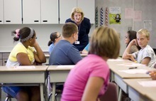 "She's just a breath of fresh air," says Michelle Peterson, principal of Rose Creek. "It just feels really different right now. Instead of 'We're going through a split, we don't have any money, we're laying people off,' [Johnson's message is] 'We've hit the bottom and now we're moving up.' "