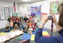 "Do you know what? I need you to do something very, very important for me this year," Johnson says to a room full of first-graders at the year-round school. "I need you to work hard for your teacher every day not every other day, not once a week, but every day. Come to school and work hard for your teacher. Will you do that for me?"