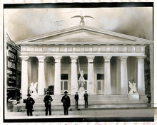 A string band poses on the steps of Salt Lake City's Hall of Relics during the dedication of the Brigham Young Monument in July, 1897.