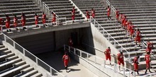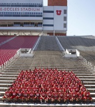 The University of Utah football team gathered for their team photo at Rice-Eccles Stadium i