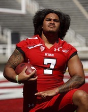 V.J. Fehoko poses for a photo as the University of Utah football team gathered for their te