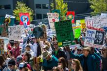 Participants march to the Governor's Mansion during the Utah People's Climate March Saturday, April 29, 2017.