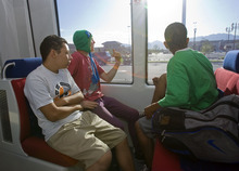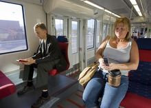 Amy Raugust, of Kearns, said she is happy to trade her car for a train. "I'm sick of driving," she said. "It takes forever to get from where I live to downtown. It is not worth the hassle. I'm all for trying this," she said with a book on her lap while riding the Mid-Jordan extension. Many others were tapping on computers or chatting on cell phones as they rode.