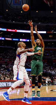 Utah Jazz center Boris Diaw (33) defended by LA Clippers guard Austin Rivers (25) as the Ut