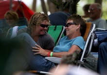 The festival is, after all, about enjoying "life, love and liberation." As the crowd grew, settling on blankets and lawn chairs, scores of women in couples and groups relaxed among a few men, one who danced with his daughters.