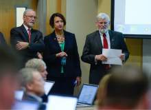 Betz also called for unity across the U. health system as it worked on "finding permanent leadership, transforming our campus and moving forward with all of the important initiatives you are working on."