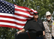 "We have pushed legislation to make sure that we decide who is the sovereign. Is it the state of Utah or the federal government?" said Rep. Chris Herrod, a Provo Republican and real estate developer. He was the first of the local, state and federal politicians who addressed a Take Back Utah rally at the Utah State Fairpark in Salt Lake City.