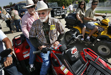 Former Kane County Commissioner Mark Habbeshaw, Rep. Mike Noel, R-Kanab, Gov. Gary Herbert, Utah Deputy Attorney General John Swallow and others added their aggressive remarks before hundreds of supporters under a blazing sun. The crowd then hopped aboard their ATVs, trail bikes, flag-flapping four-wheel-drive trucks, an ancient Willys jeep, rear-engine dune buggies and a few family SUVs.