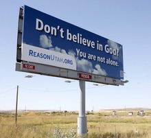 The billboard was purchased by the Utah Coalition of Reason with a $3,678 grant from the Washington D.C.-based United Coalition of Reason and will remain up through Sept. 19.