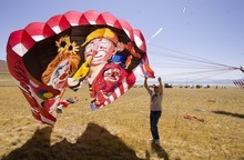 The iQuad team ran its bowtie-shaped kites through graceful synchronized moves. Their kites formed circles and pyramids, chased each other across the sky, dropped into dives and stopped to hover inches off the ground. The team timed these maneuvers to music: Led Zeppelin's "Stairway to Heaven" and the theme from "Raiders of the Lost Ark." Working solo, Barresi made his kite dance, walk, twitch and swoon in comic fashion to accompany music from the Rossini-inspired Bugs Bunny cartoon "Rabbit of Seville."