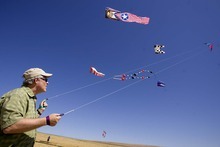 Antelope Island is a challenging place to fly kites because the winds around the Great Salt Lake are unpredictable, said Crafts, who has flown his kites around the Midwest. What feels like a good breeze at ground level can change speed and direction at 30 or 40 feet up. "You're having to work the lines," Crafts said.