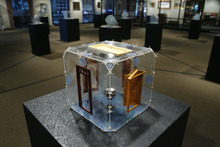 The 16 geometric glass figures will sit upon pedestals, shining under the gallery lights at the celebration center until Oct. 11. Each piece holds layers of meaning, expressed through shape, design, color, symbol and construction.