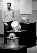 For example, a sculpture resembling a multi-pointed star, a shape technically called a stellated dodecahedron, sits in a corner of the gallery. The sculpture, named Giver of All, illustrates the belief that God is the source of all things and that human skills are best when used in the service of God. Kosorok said the piece is based on a story from Islamic Sufi tradition, in which Jesus Christ is recognized as first among saints, but not the messiah.